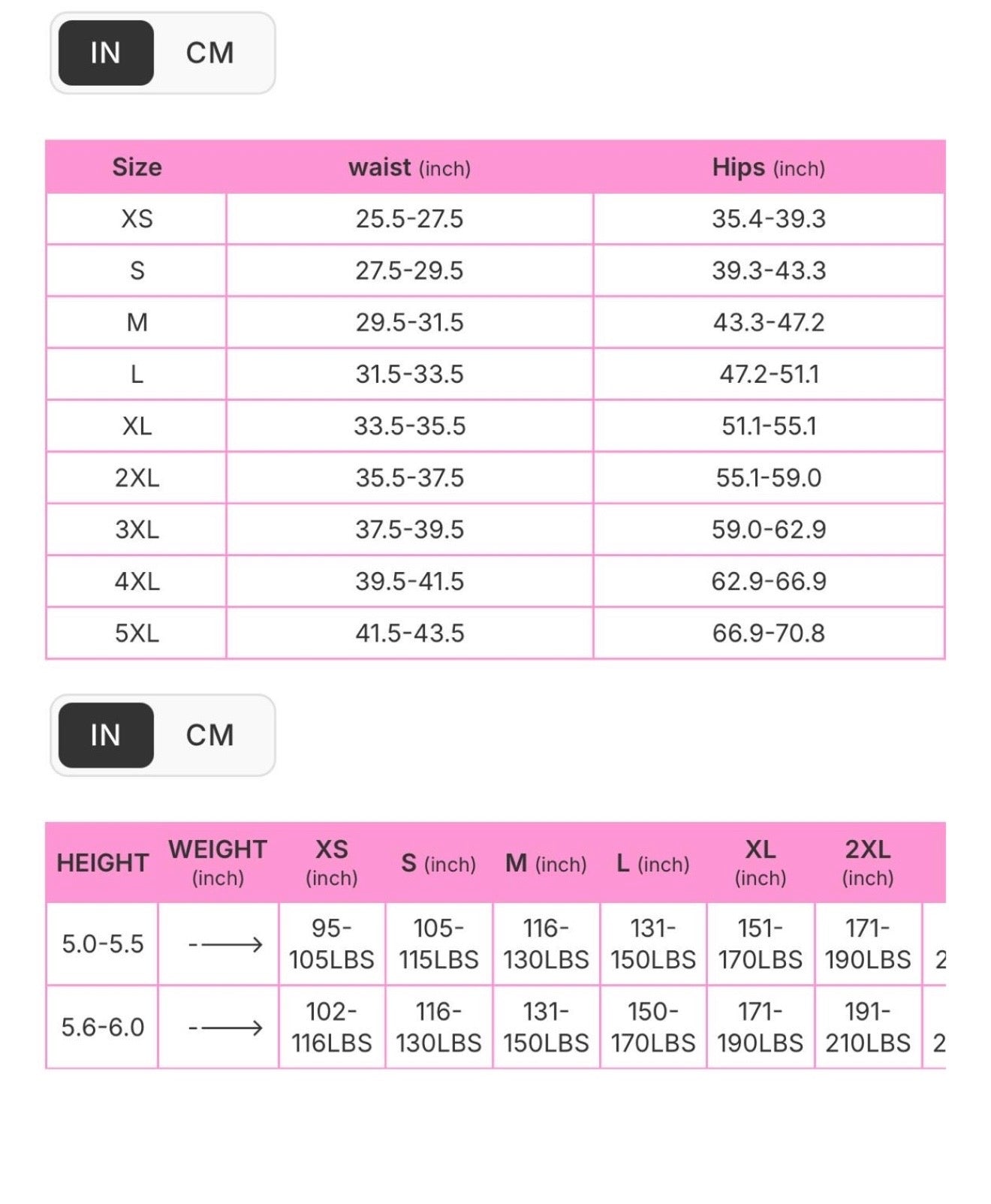 - Size Chart Notice: Please read the size chart and measure your hips and waistline, and choose the size that bests go with your measurements. Our garments are meant to fit tightly, to mold and contour your body for a firm and healthy look. Our garments come in plenty of sizes from XS-5XL. Wear your garment confidently under your clothes. Be proud and own your physique in seconds
